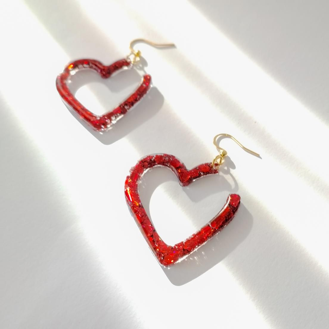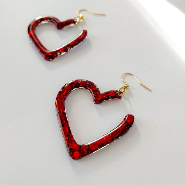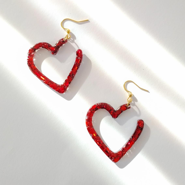 Estos pendientes son muy favorecedores, de tipo arete con forma de corazón, pero con gancho dorado para conseguir un agarre cómodo y con movimiento que hará resaltar su efecto brillo.